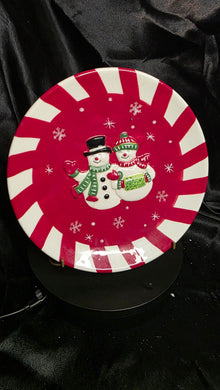 Vintage Snowman Couple Ceramic Plate - 8 Inch Holiday Decor