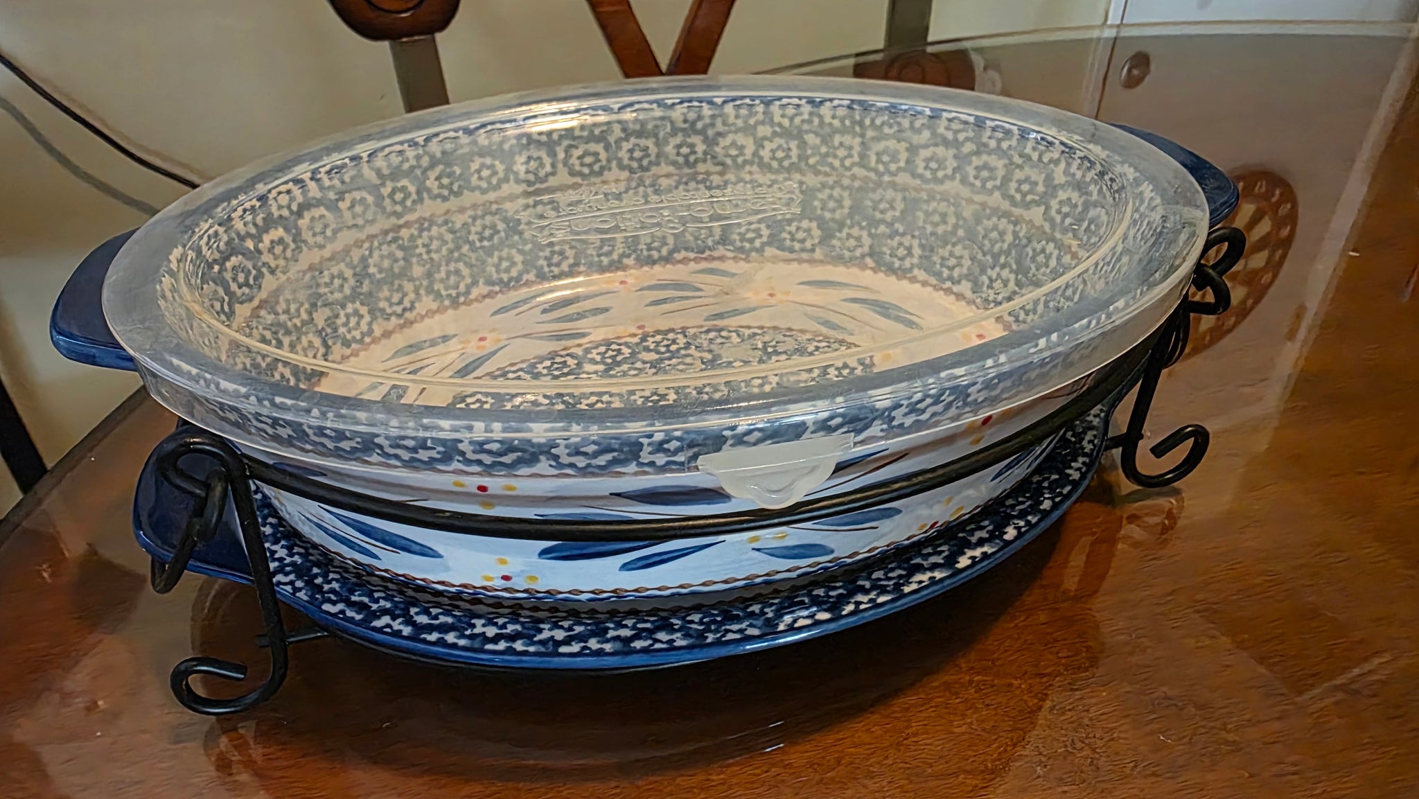 Temp-tations Old World Blue 2.5 Qt Oval Baker w/ Lid & Wire Rack – By Tara