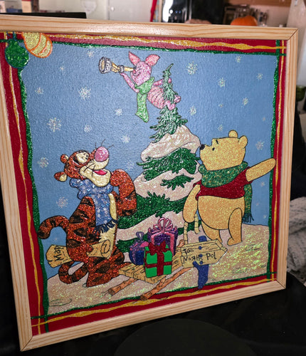 • Winnie-the-Pooh & Eeyore Holiday Glitter Art — Framed 17" x 17" Wall Piece