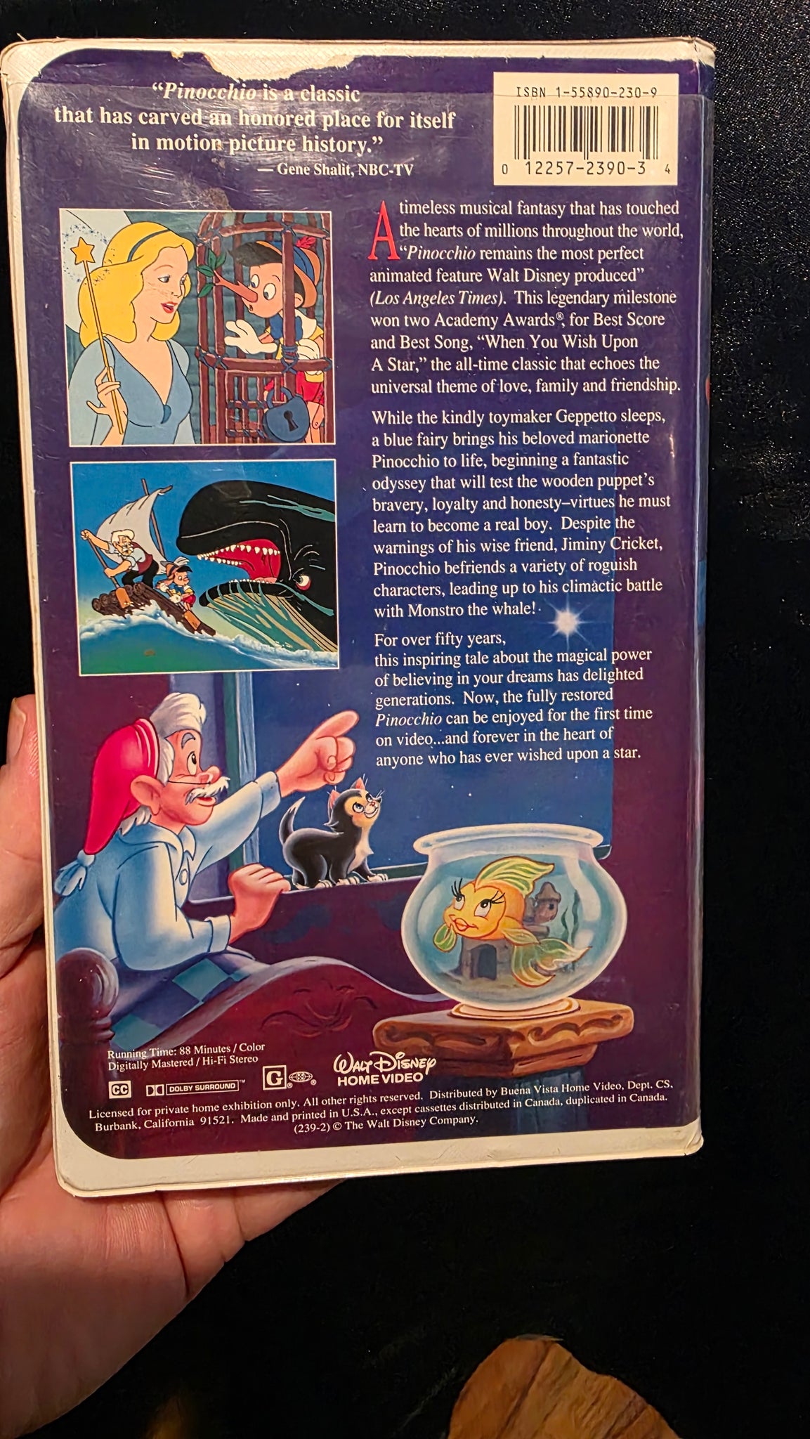 #TreasuresOfBako #Disney #Pinocchio #VHS #WaltDisney #MasterpieceCollection #VintageMovies #90sNostalgia #ClassicAnimation #DisneyCollector #RestoredClassic #JiminyCricket #FilmHistory #RetroMovies #ForSale #CollectorsItem #Bakersfield #DisneyMasterpiece #DisneyFan #Animation #90sVibes #MovieCollector #VHScollector #RareVHS #BakoTreasures #UsedVHS #GoodCondition #VintageFind #TreasureHunting