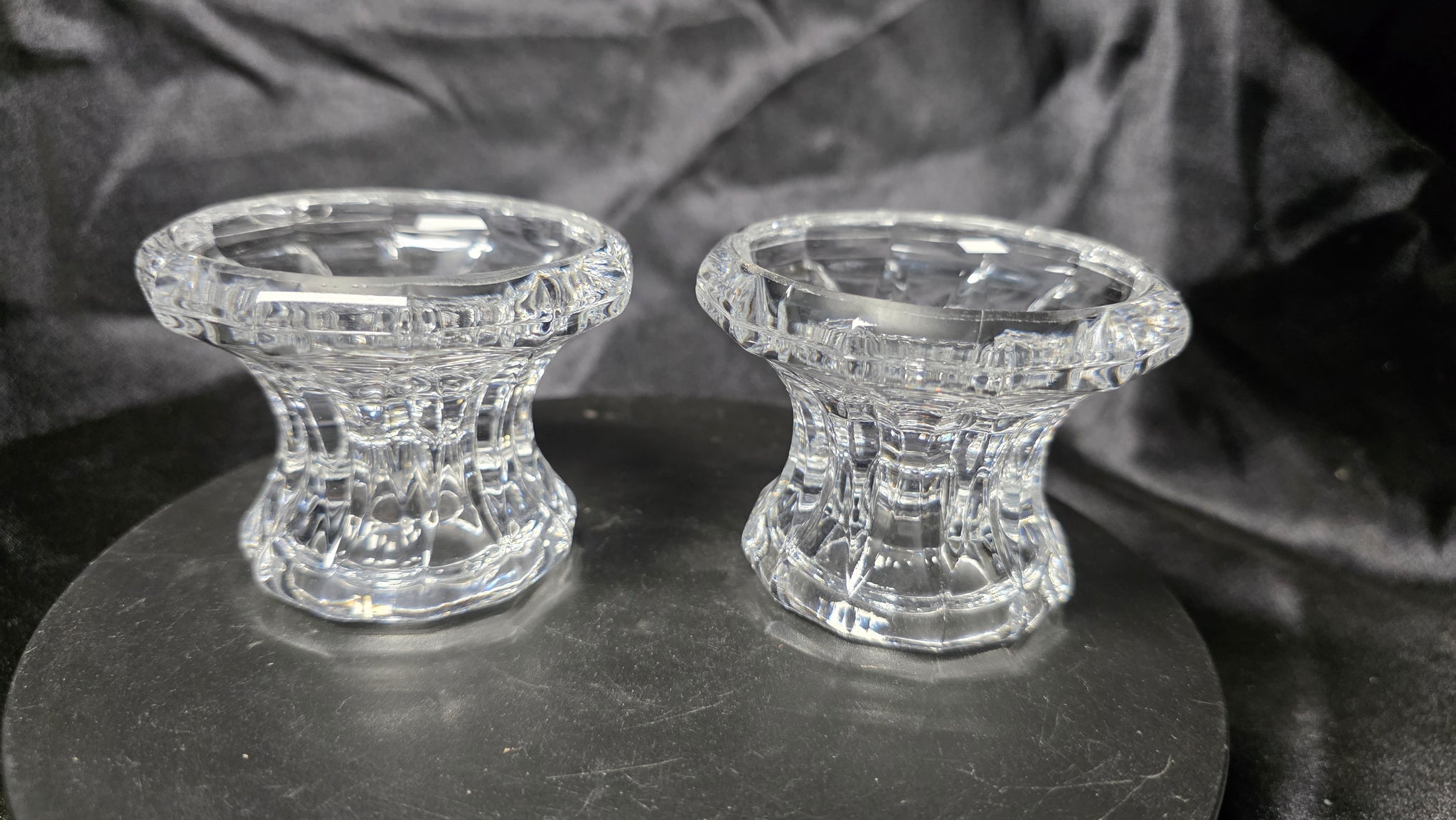 Condition appears very good with no visible chips or cracks, preserving crisp edges and clear brilliance. A refined pair that adds instant warmth and sophistication to any setting.