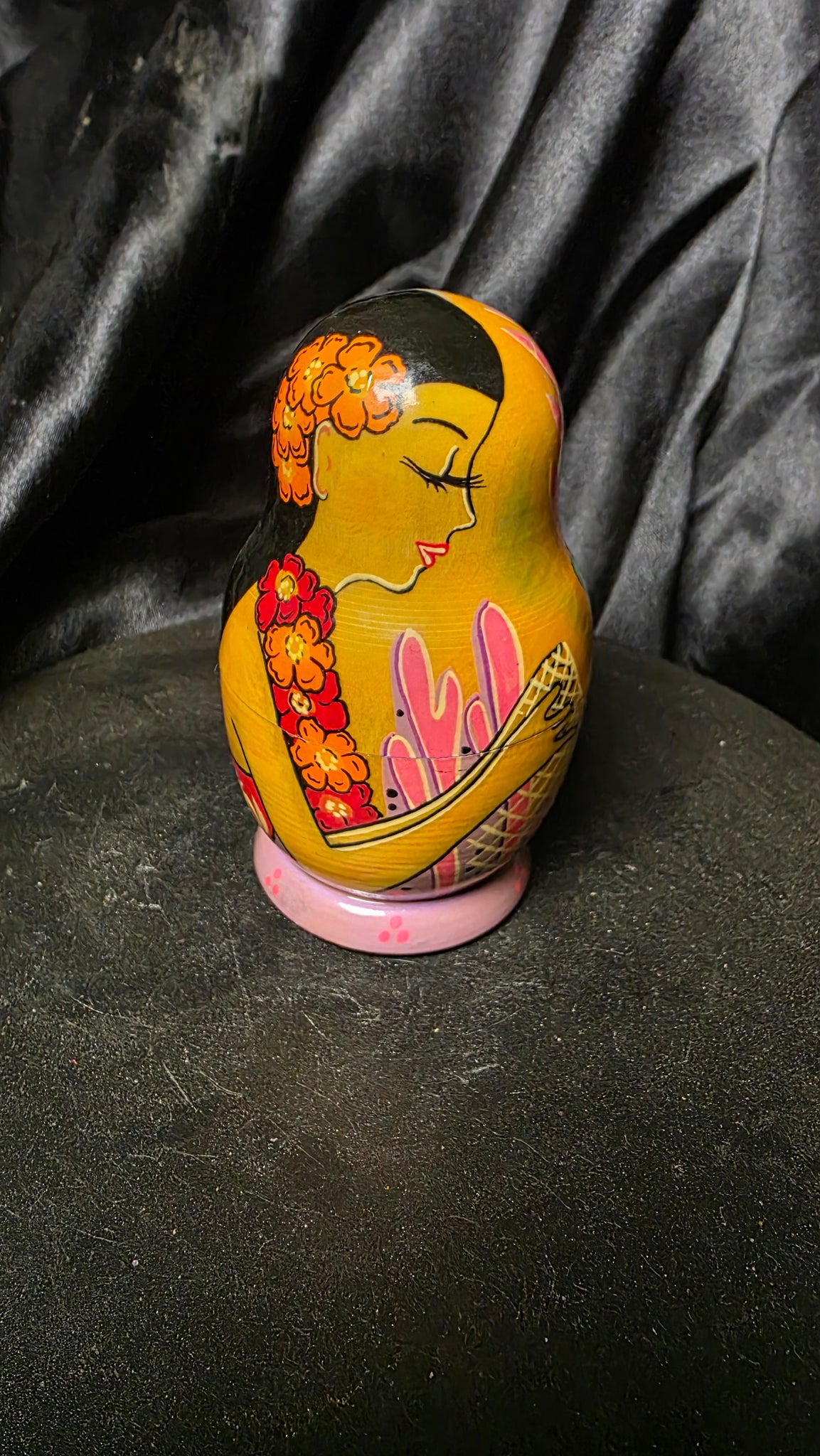 Whether displayed as a decorative conversation piece, added to a curated folk art collection, or gifted to someone who appreciates handcrafted artistry, this nesting doll set offers both visual charm and authentic craftsmanship rooted in generations of tradition.
