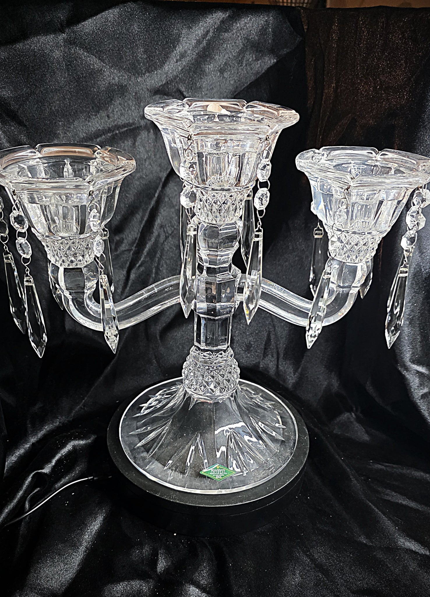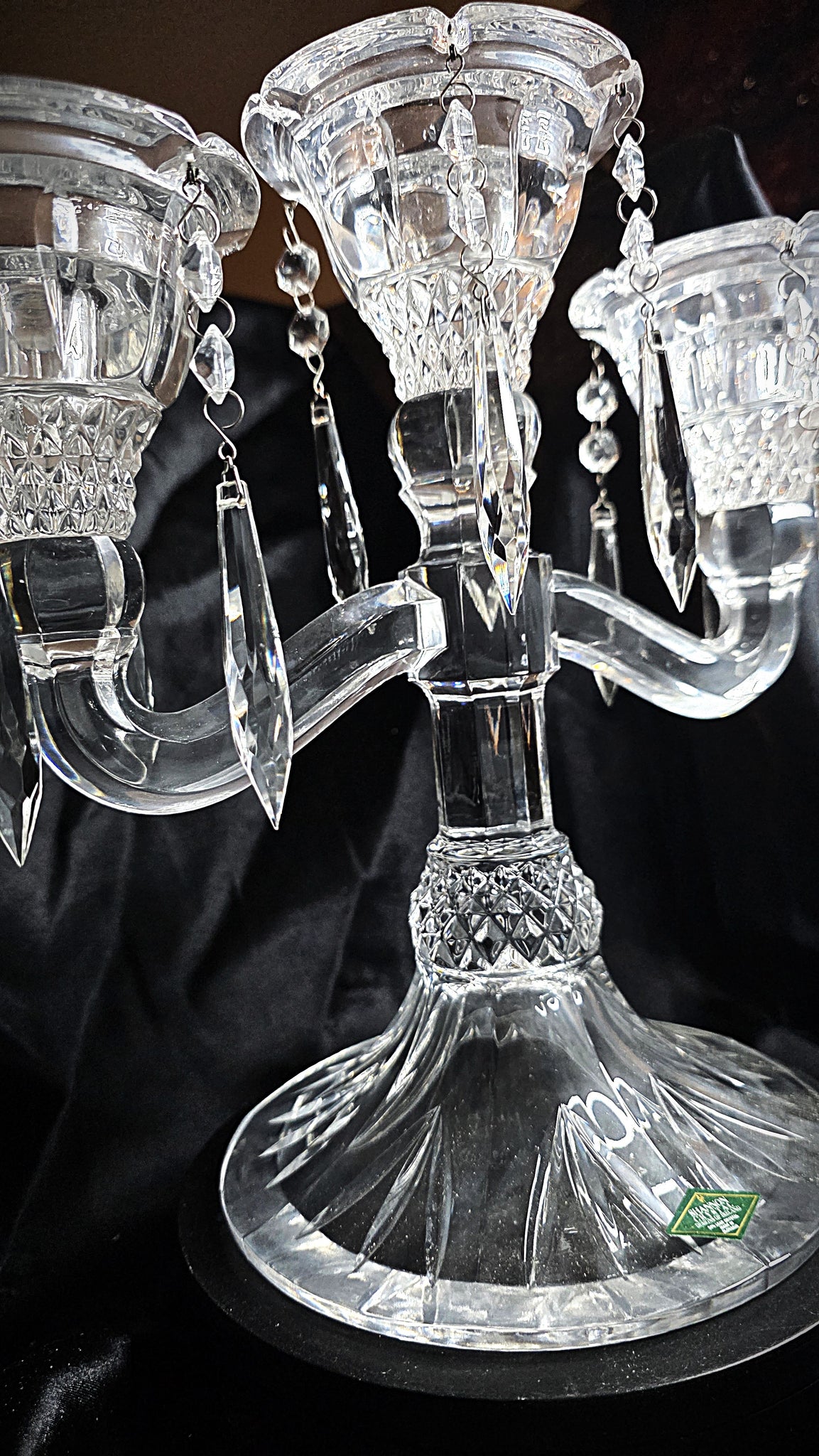 This example is particularly special, retaining both its original maker’s label and its original presentation box, offering collectors a rare opportunity to acquire a crystal centerpiece that has been admired, preserved, and passed down with care. Whether displayed on a dining table, set upon a formal buffet, styled with seasonal florals, or used to illuminate a quiet evening gathering, it transforms the atmosphere with a rare and undeniable presence.