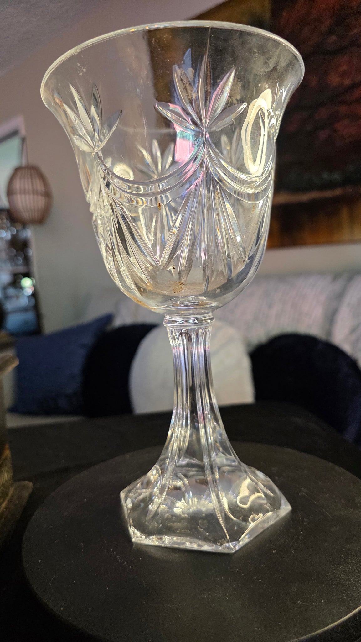 Whether you're a collector of fine crystal or looking for a memorable wedding or housewarming gift, this vintage Shannon Crystal compote bowl is a rare and beautiful find that will add a touch of refined beauty to any home. This particular piece is in excellent vintage condition with no chips or cracks. It is a cherished heirloom piece that has been loved throughout the years and is ready to bring its radiance and charm to a new home.