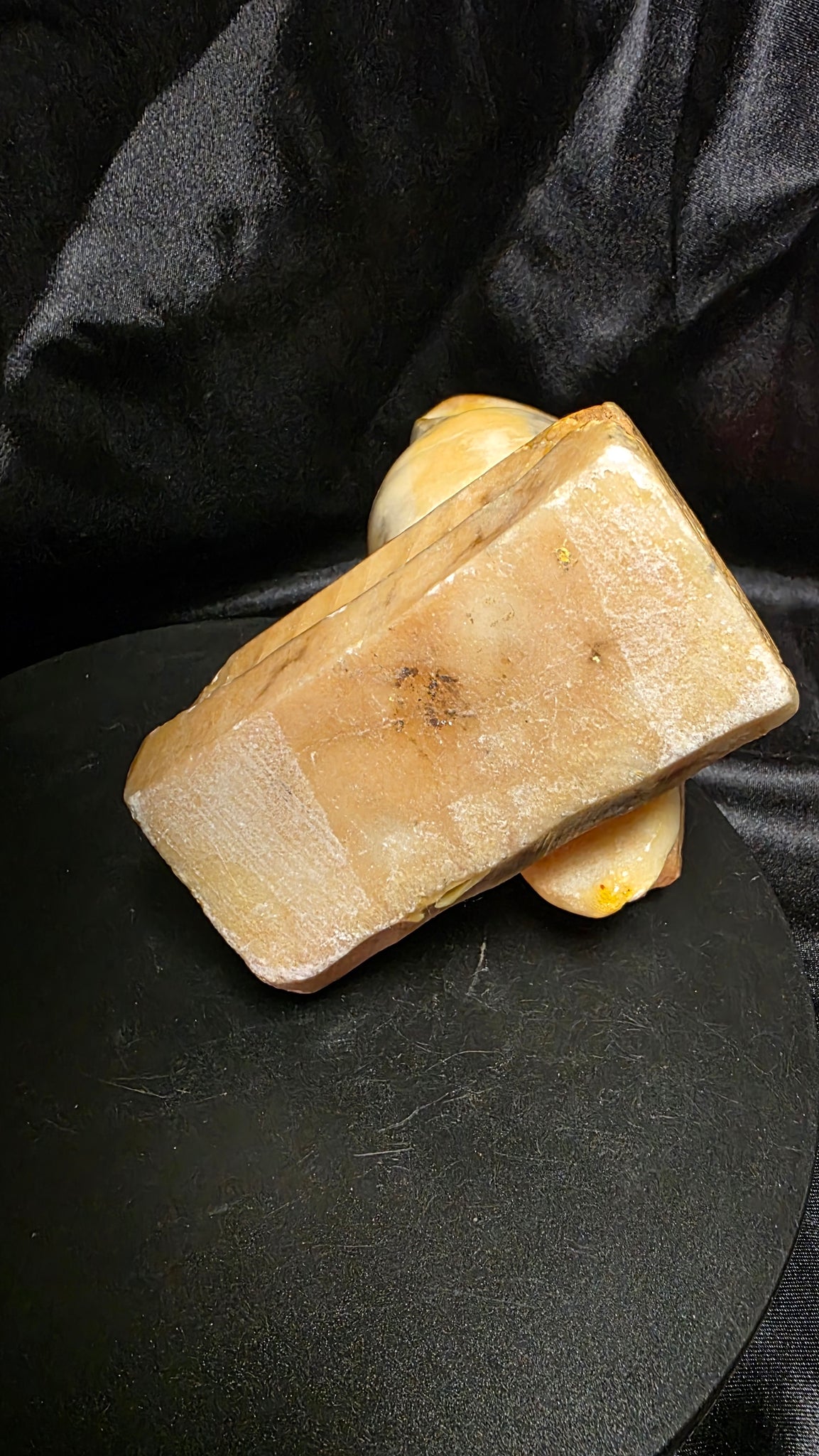 There is something quietly powerful about an owl carved from stone — a presence that feels ancient, observant, and deeply rooted in time. This vintage hand-carved Italian alabaster owl carries that spirit effortlessly, shaped from luminous natural stone whose soft bands of cream, honey, and warm earth tones flow organically through the form. No two areas are alike, making this piece entirely unique, as nature intended.