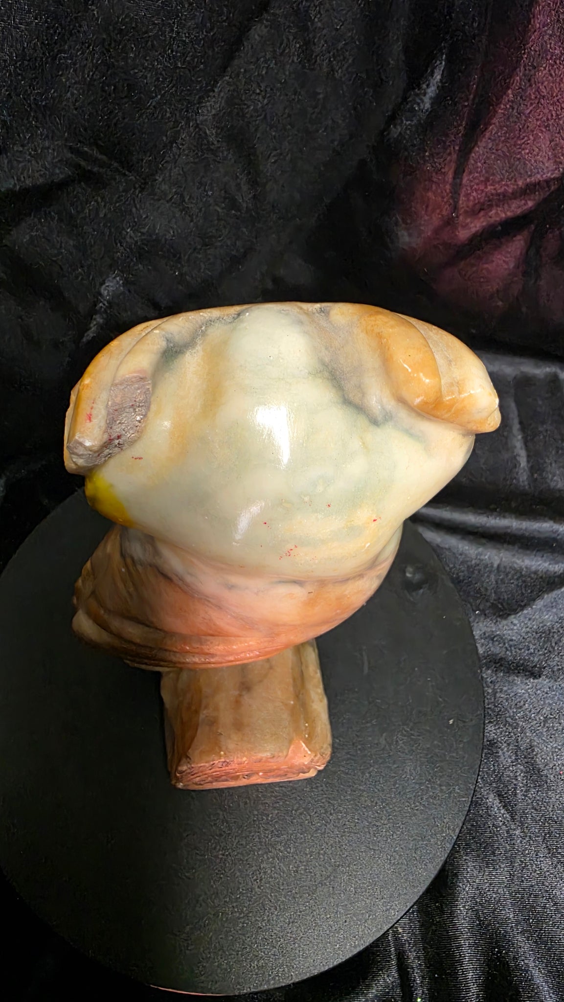 Made in Italy and carved from genuine alabaster or banded onyx marble, this figurine embodies classic European craftsmanship. Alabaster has long been prized for its soft translucence and natural variation, qualities that make each carving a one-of-a-kind work of art. This piece works beautifully as a decorative accent, collectible sculpture, or statement paperweight in a curated space.