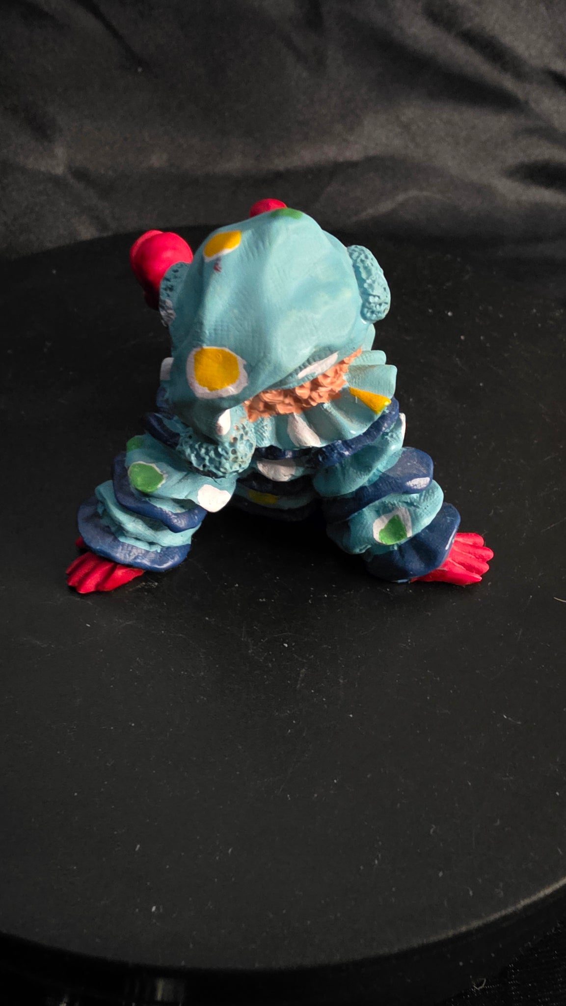 Standing roughly 4½ inches tall in a seated pose, this whimsical clown fits beautifully on a bookshelf, desk, or curio cabinet. A delightful find for collectors of clown memorabilia, circus nostalgia, or artisan figurines, it radiates happiness and nostalgia alike.