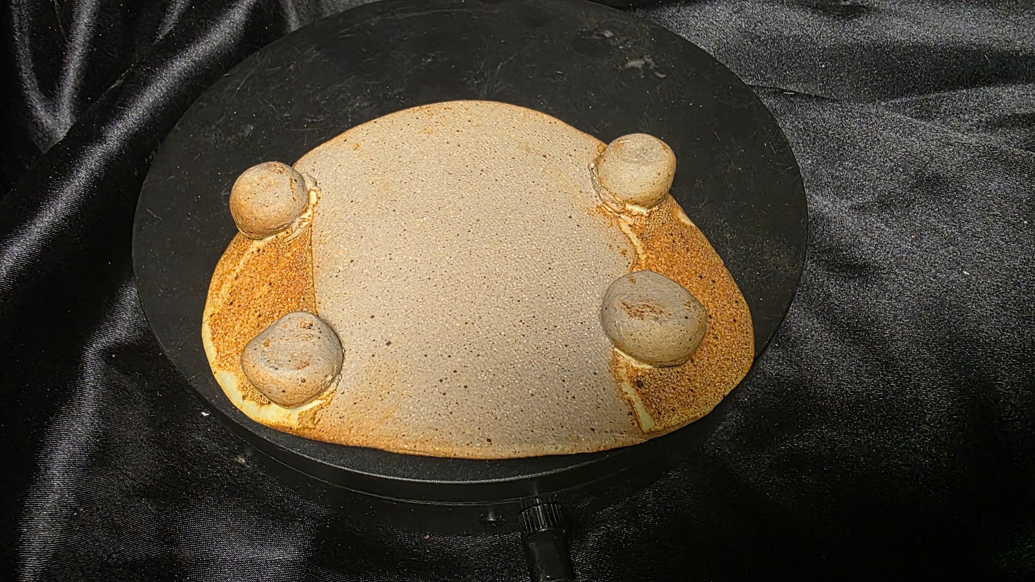 Earthy, tactile, and unmistakably handcrafted, this studio pottery piece embodies the quiet beauty of functional art. Formed in an organic, gently contoured shape, it rests on four small rounded feet, giving it subtle elevation and presence. The warm, toasted brown surface is rich with natural speckling, creating a finish that feels both grounded and expressive.