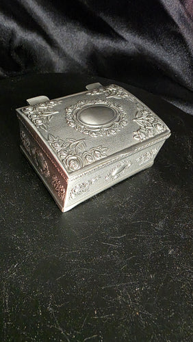 Vintage Floral Embossed Metal Jewelry Box – Velvet-Lined Trinket Chest with Antique Silver Finish (2.75" x 2" x 1")
