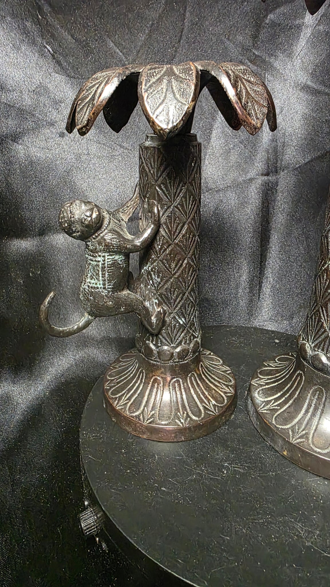 Bombay Brass Monkey Palm Tree Candle Holders – Hollywood Regency Pair