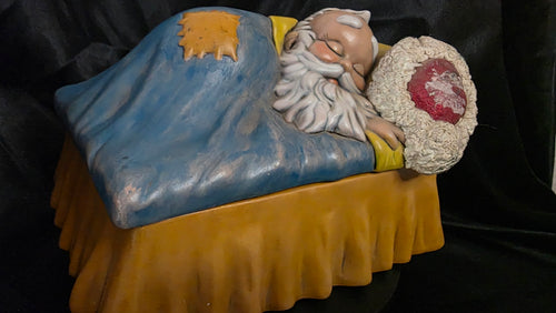 Vintage Mid-Century Sleeping Santa Claus Cookie Jar / Candy Dish – Hand-Painted Ceramic by Alberta’s Molds (1950s)