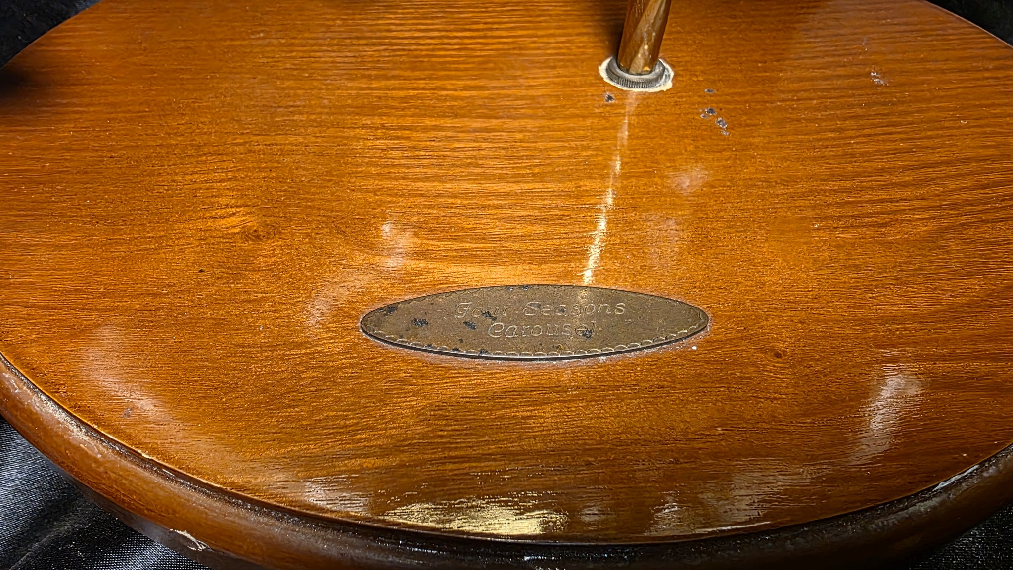 The base bears a “Four Seasons Carousel” nameplate, identifying it as part of Ashton-Drake’s collectible series released in 1998. Designed as the Winter edition, it reflects a moment in time when collectible craftsmanship met artistic storytelling, resulting in a piece that remains visually captivating decades later.