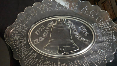 Vintage 1976 Bicentennial Liberty Bell Glass Platter – Commemorative “1776–1976 Declaration of Independence” Collector Serving Tray