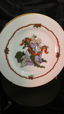 Vintage Fitz & Floyd “Deck the Halls” Christmas Plates (2) – 1983 Japan – Gold Trim – Victorian Couple & Puppy Holiday Scene