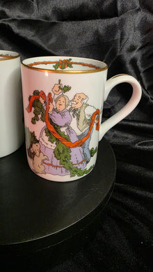 Vintage Fitz & Floyd “Deck the Halls” Christmas Porcelain Mug Pair – 1983 Japan – Gold Trim – Discontinued