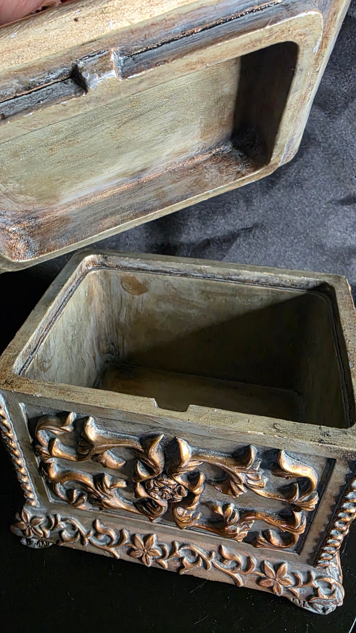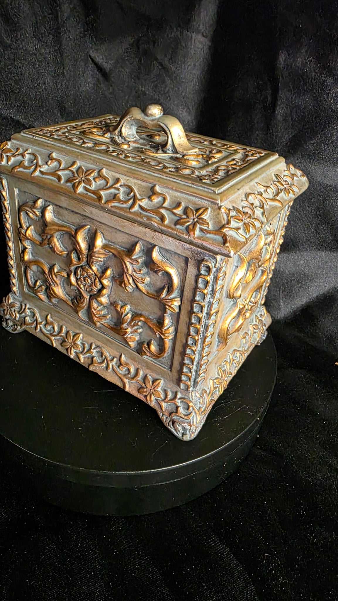 #TreasuresOfBako #VintageStyle #TrinketBox #JewelryBox #AntiqueGold #ResinDecor #FloralRelief #BaroqueStyle #RococoDecor #VanityDecor #HomeAccents #CollectibleFinds #HiddenGems
