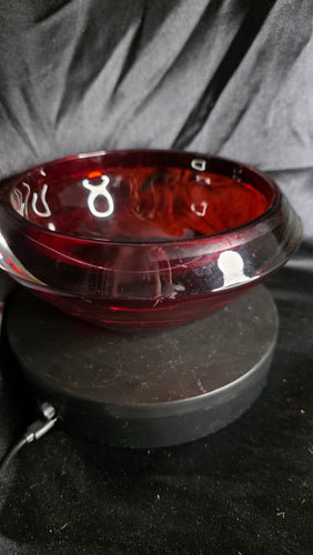Vintage Ruby Red Heavy Glass Flared Bowl – Mid-Century Modern Teleflora-Style Centerpiece