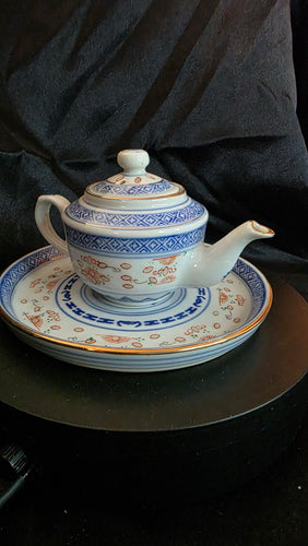 Vintage Chinese “Ling Long” Rice Grain Porcelain Teapot & Saucer — Ranger Imports, Norcross, Georgia