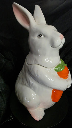 Vintage Ceramic Bunny Cookie Jar – White Rabbit with Carrot – 12” Collectible Spring Kitchen Decor