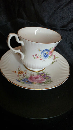 Vintage Lionheart England Fine Bone China Teacup & Saucer Set — Hand-Painted Floral Elegance with Gold Trim