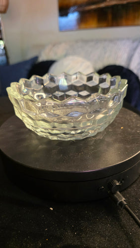 Vintage Fostoria American Clear Glass Bowl | Cubist Pattern Candy Dish | Treasures of Bako