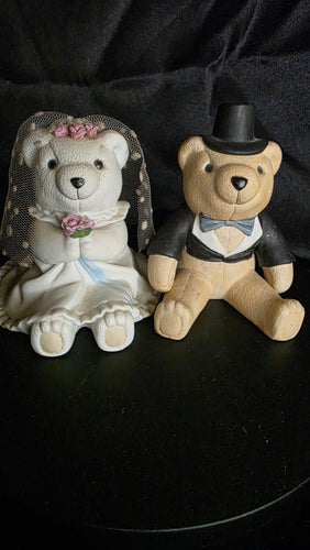 Vintage Russ Berrie Bride and Groom Teddy Bear Figurines – Porcelain Wedding Keepsake Set (1970s–1980s)