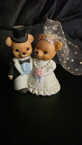 Vintage Homco Bride & Groom Teddy Bear Figurine #1424 – 1970s Ceramic Wedding Cake Topper