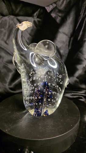 Vintage Italian Murano Art Glass Elephant Paperweight with Bullicante Bubbles - Trunk Up Figurine