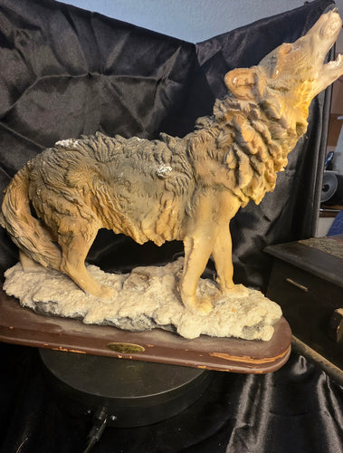 Vintage De Elina Howling Wolf Figurine by Turtle King Corp | Hand-Painted Resin Statue