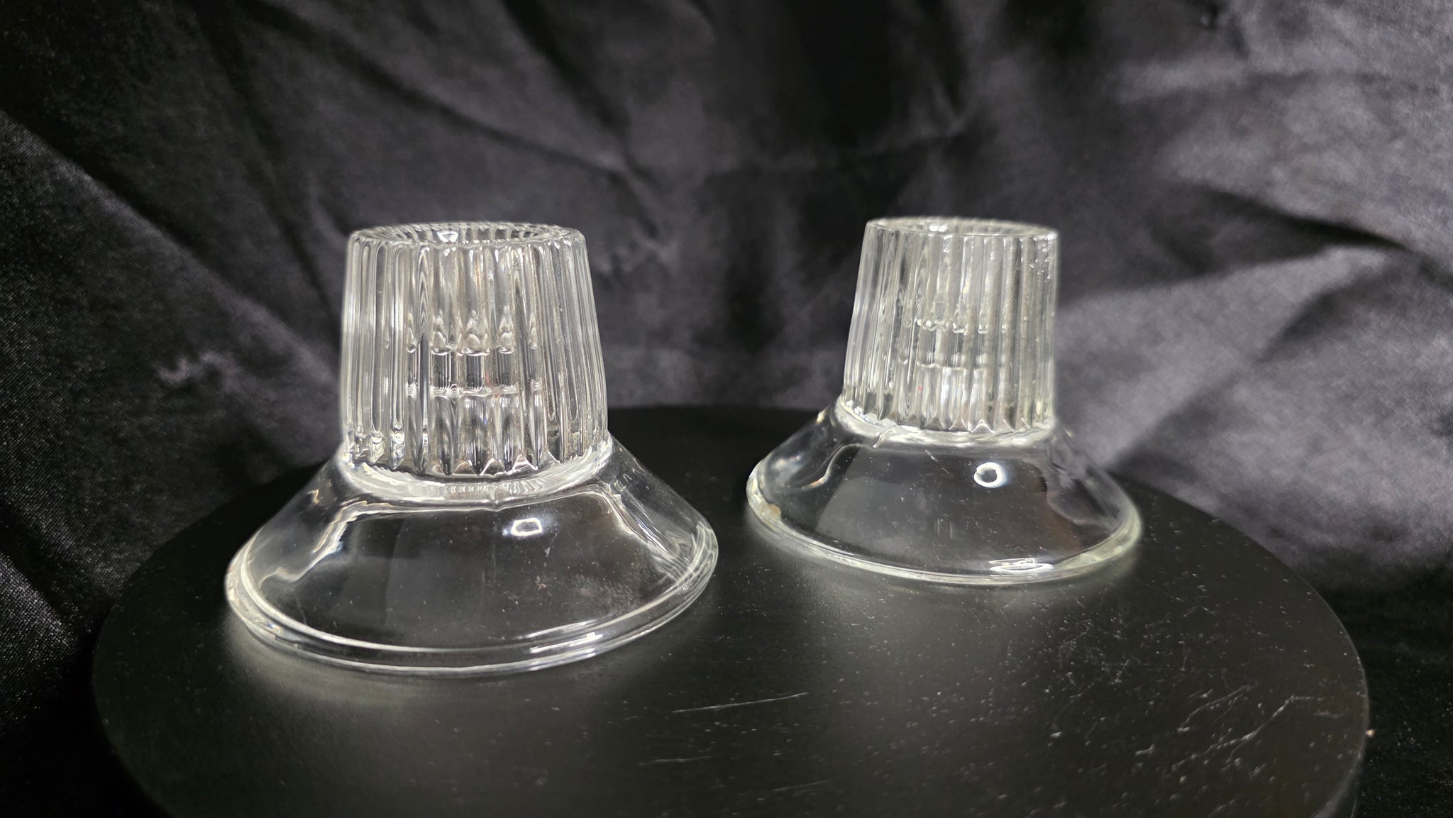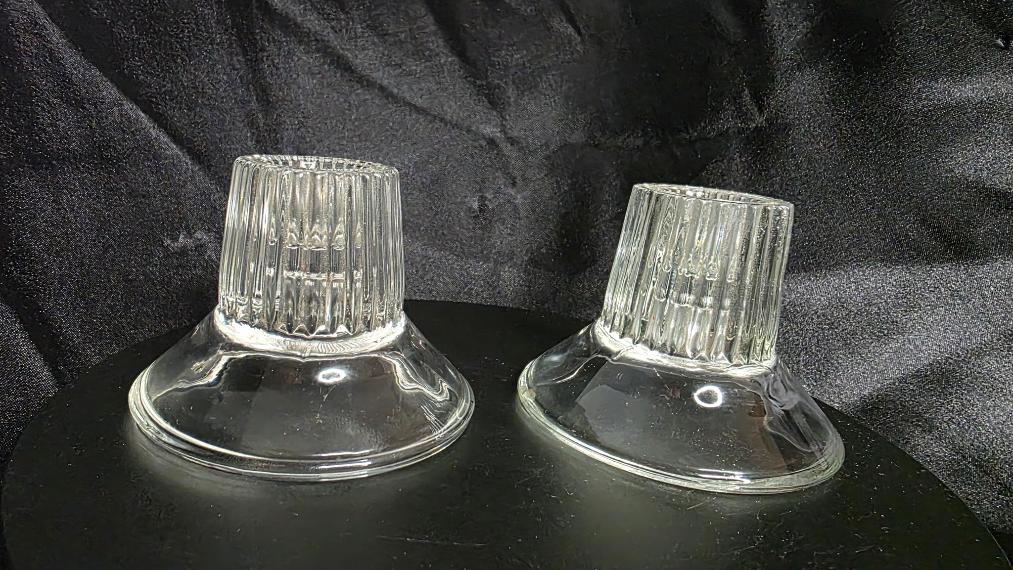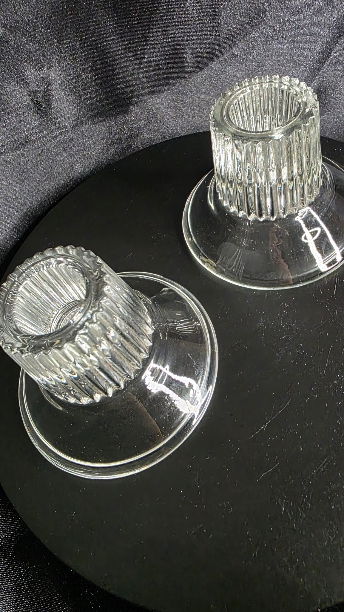 Vintage Reversible Ribbed Glass Candle Holders – Set of 2 | Mid-Century Clear Pressed Glass Dual-Use Taper & Tealight Holders